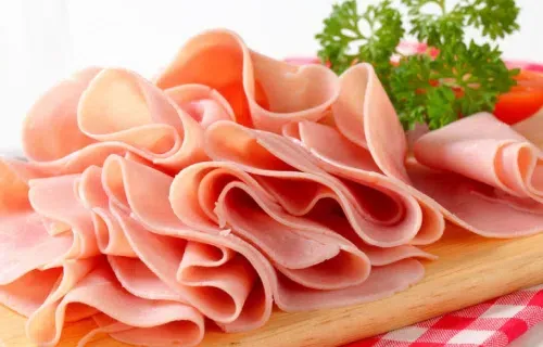 El jamón americano es un embutido que se puede utilizar en recetas, emparedados y loncheras. Se elabora con una mezcla de carnes de res y pollo